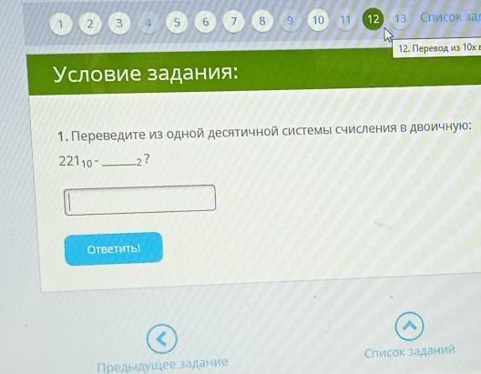 221 делим на 2 до самого конца. Т.е. 221÷2= 110 и 1 в остатке. Единица нам нужна.