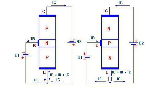 работе с p-n-p и n-p-n транзисторами? Между какими