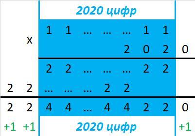 число 2020 в столбик умножили на число вида 11... 11 состоящее из 2020 единиц Сколько цифр содержит это произведение?