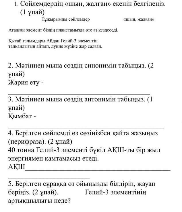 4) 40 тонна Гелий 3 элементі АҚШты бір жыл бойы энергиямен қамтамасыз етеді екен.