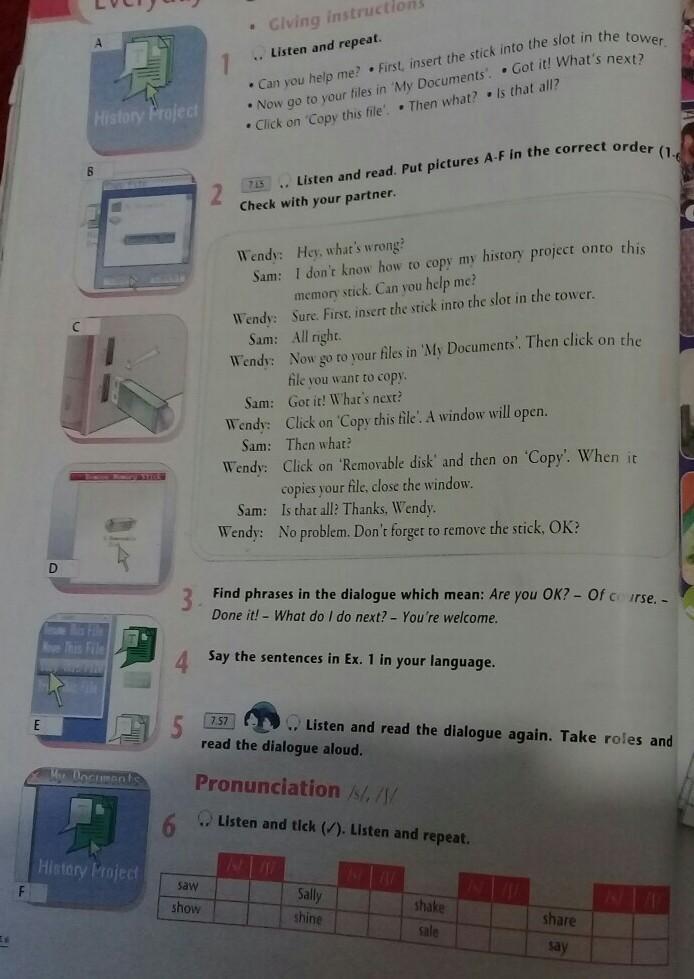 Sam: I don't know to copy my history project onto this memory stick. Can you help me? — A)