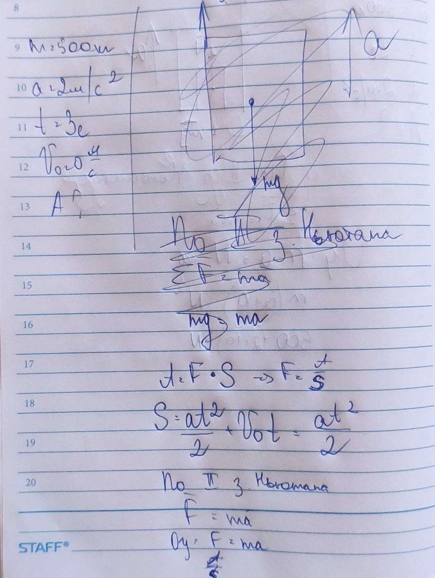 ліфт з вантажем має масу 0,5т.Чому дорівнює робота з підняття ліфта в перші 3с руху, якщо ліфт рухається вгору з прискоренням 2м/с²?