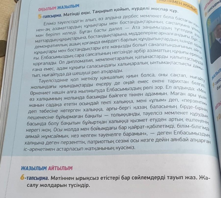 3)Тәуелсіздікті сыйлау құрметтеу өміріміздегі басты құндылық