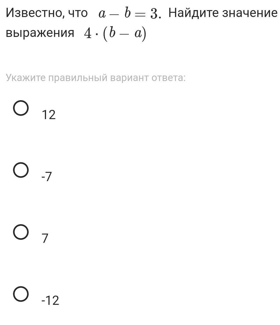 Запишем выражение a-b=3 в виде -b+a=3. И домножим это выражение на -1: b-a=-3.