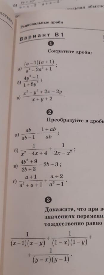 в 1 сократить дробь,во 2преобразовать дробь в выражение,в 3 доказать что при всех допустимых значениях переменных выражения тождественно равно нулю