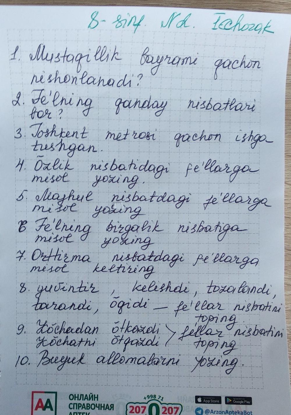 1) Mustaqillik bayrami 1- sentabr kuni nishonlanadi.