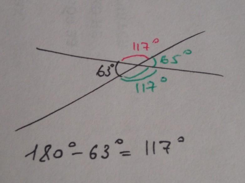 Чтобы найти другой угол, мы должны от 180° отнять 63°