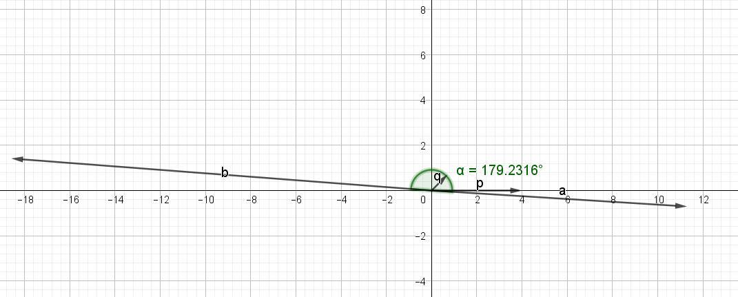 Так как вектор р сохраняет своё направление, а вектор -2а направлен в противоположную сторону от вектора а, то в треугольнике угол между векторами будет равен углу а = 3,5829°.