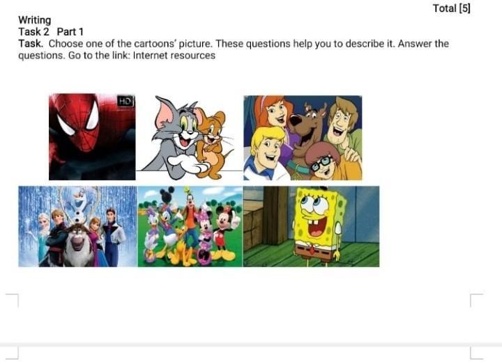 Task. Choose one of the cartoons' picture. These questions help you to describe it. Answer the questions. Go to the link: Internet resources