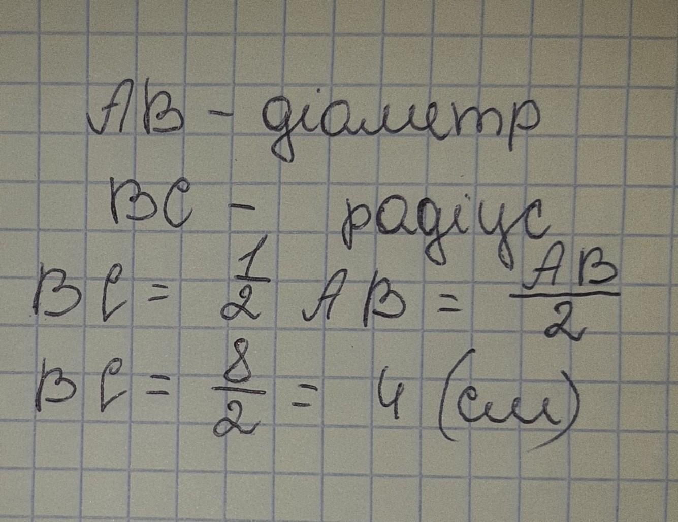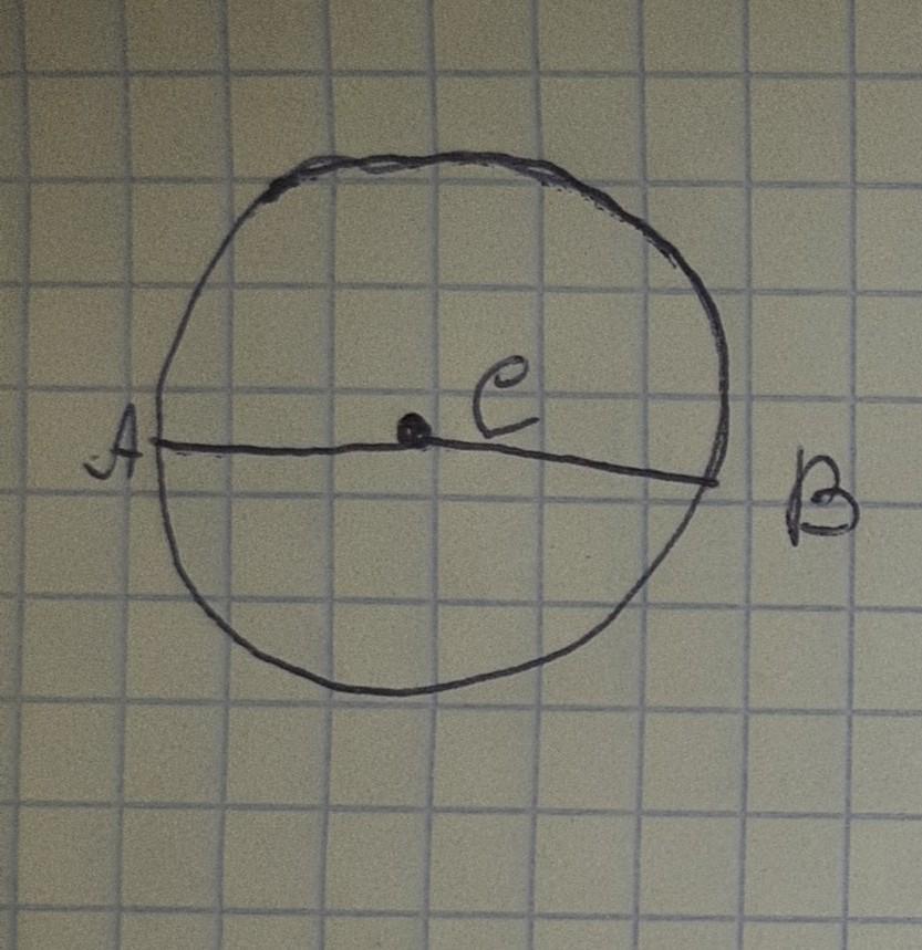 Нарисуйте круг с центром C и диаметром AB = 8. Найдите радиус.