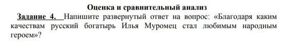 Илья Муромец-герой народных былин. Он обладает нужными качествами для богатыря. Например: он очень храбрый, сильный, мудрый, а также он хороший товарищ. Прежде чем что-то сделать, он думает, чтобы не совершить ошибку.
