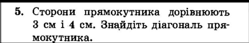 так як сторони трикутника = 3 і 4 см, то при креслені цього трикутника на площині, проводимо діагональ, яка і дорівнює 5 см