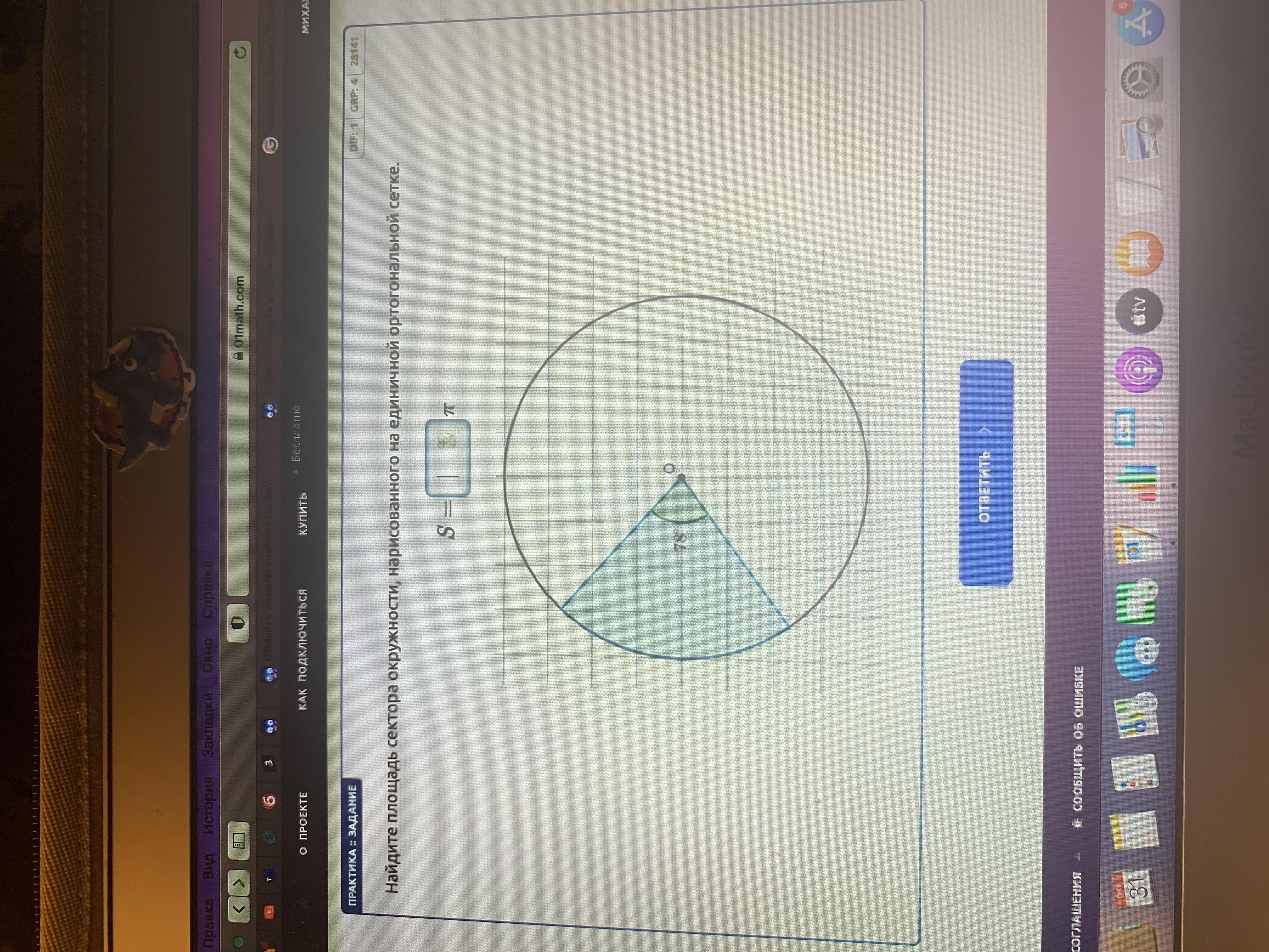 Если принимать одну клетку за 1 см, то тогда получается что S=3,14*16=50,24см² (площадь круга)