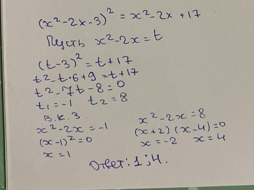 (х^2 − 2х − 3)^2 = х^2 − 2х +17