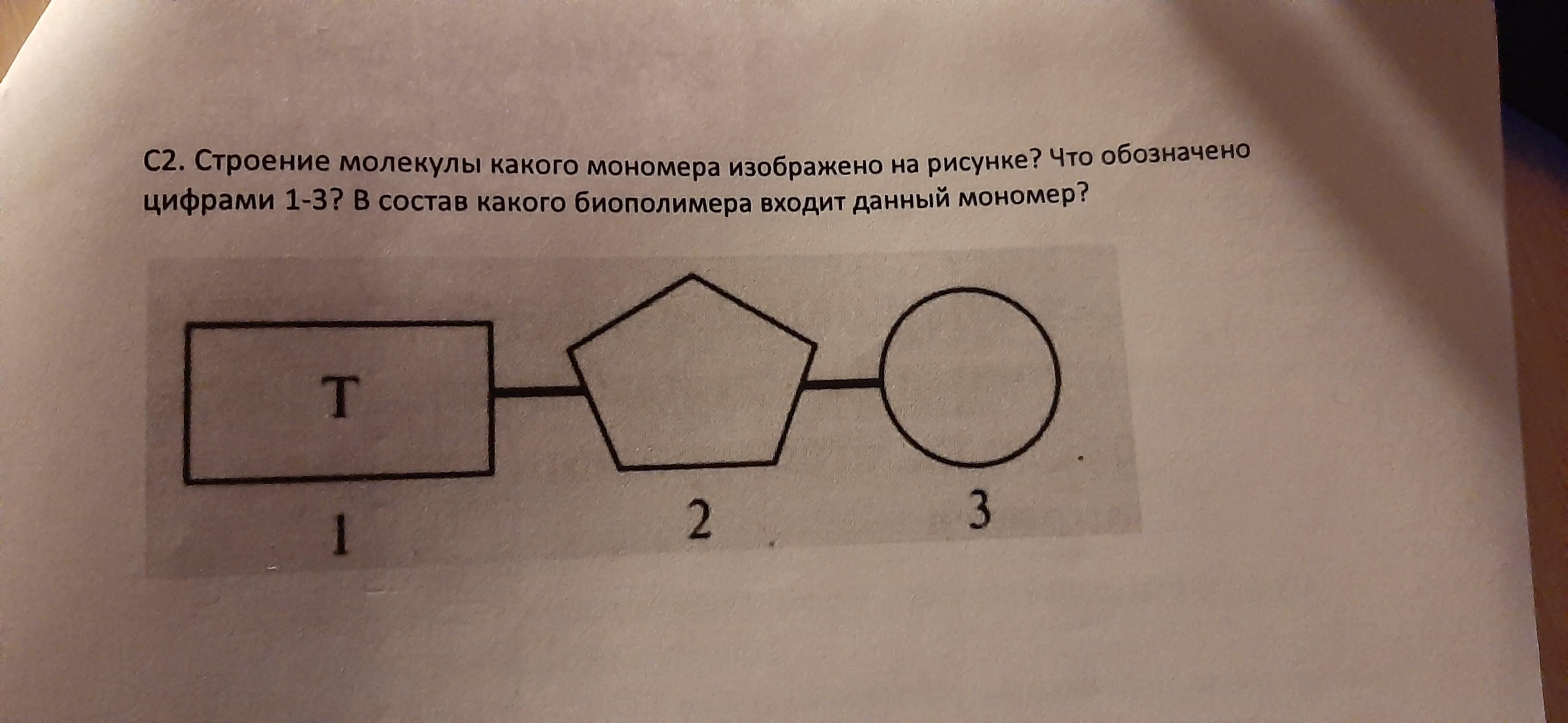 Строение какого мономера изображено на рисунке? Что обозначено цифрами 1-3? В состав какого биополимера входит данный мономер?