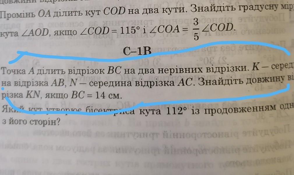 Точка А делит отрезок ВС на две неровных части. К - середина АВ, N - середина АС. Найдите КN если ВС = 14 см