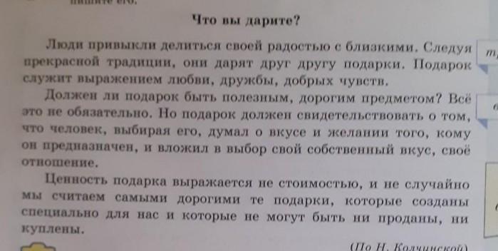 Прочитайте текст "Что вы дарите?1. Определите тип текста (повествование, описание, рассуждение)