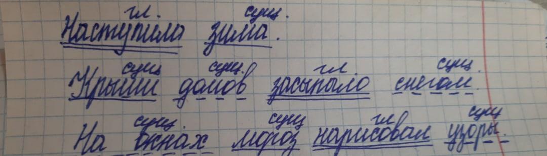 Составьте 3 предложения на тему «Наступила зима», подчеркните грамматическую основу, укажите, какой частью речи выражены главные члены предложения.