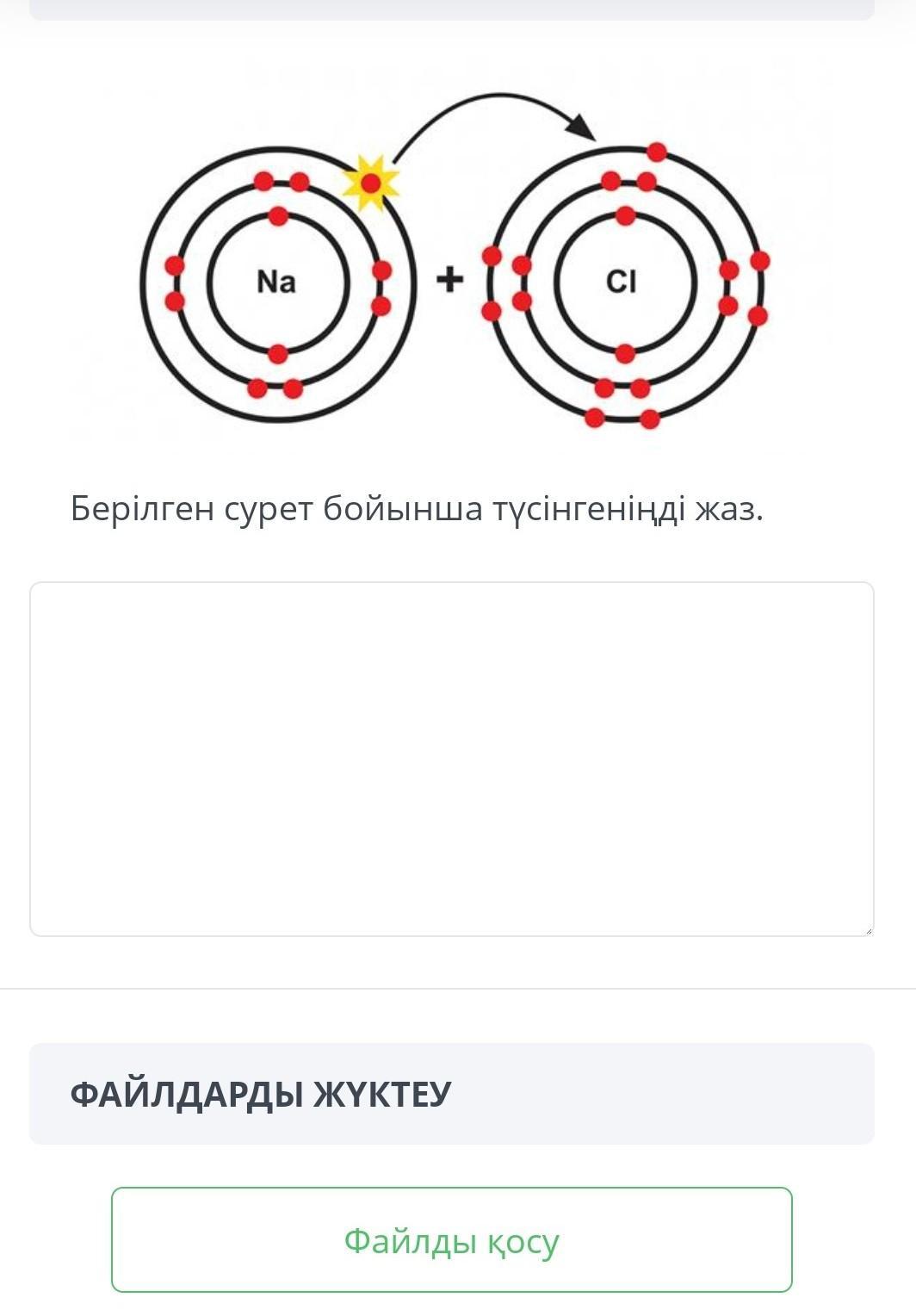 Натрий 1электрон беріп жібереді, Хлор 1электрон қосып алады.