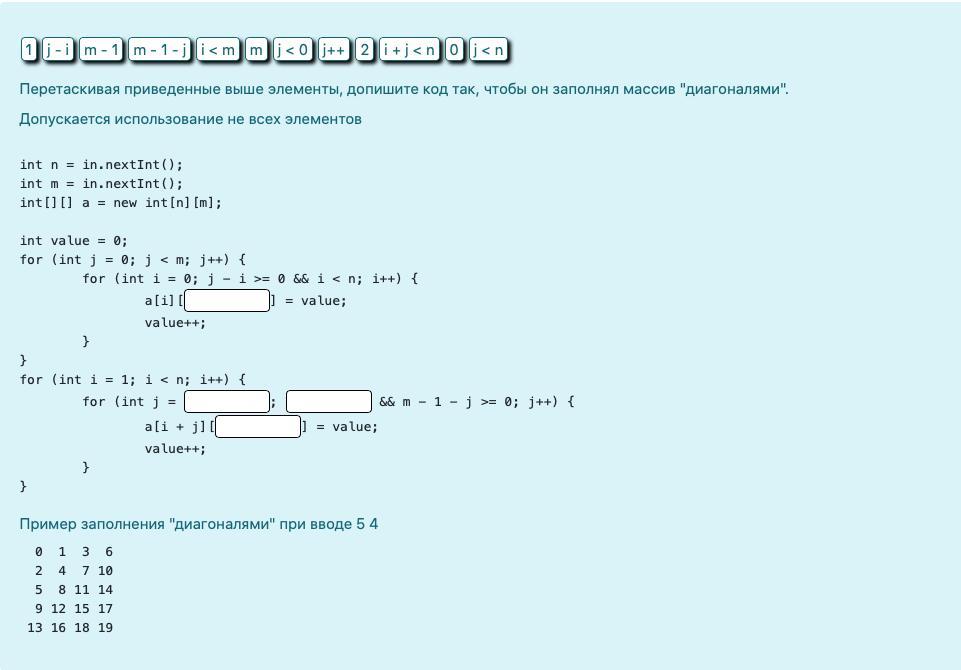 for(int j = 0; i+j < n && m - 1 - j >= 0; j++){