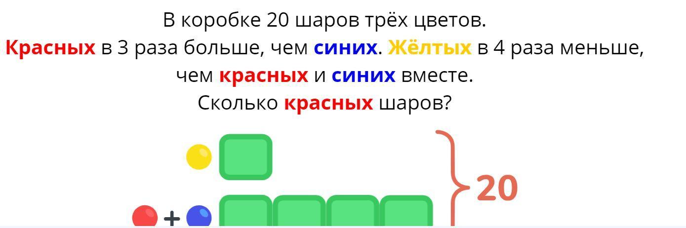 Ответ:синие-х, красные-3х, желтые (3х+х)-4