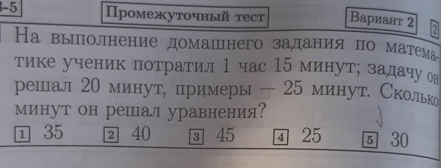 1 ч 15 мин=75 мин; 20 мин+25 мин=45 мин; 75 мин-45 мин=30 мин верно