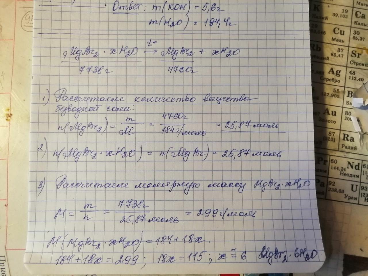 Найдите значение х в соединении MgBr2xH2O, если при полном нагревании 7738 г вещества образуется 4760г безводной соли MgBr2.