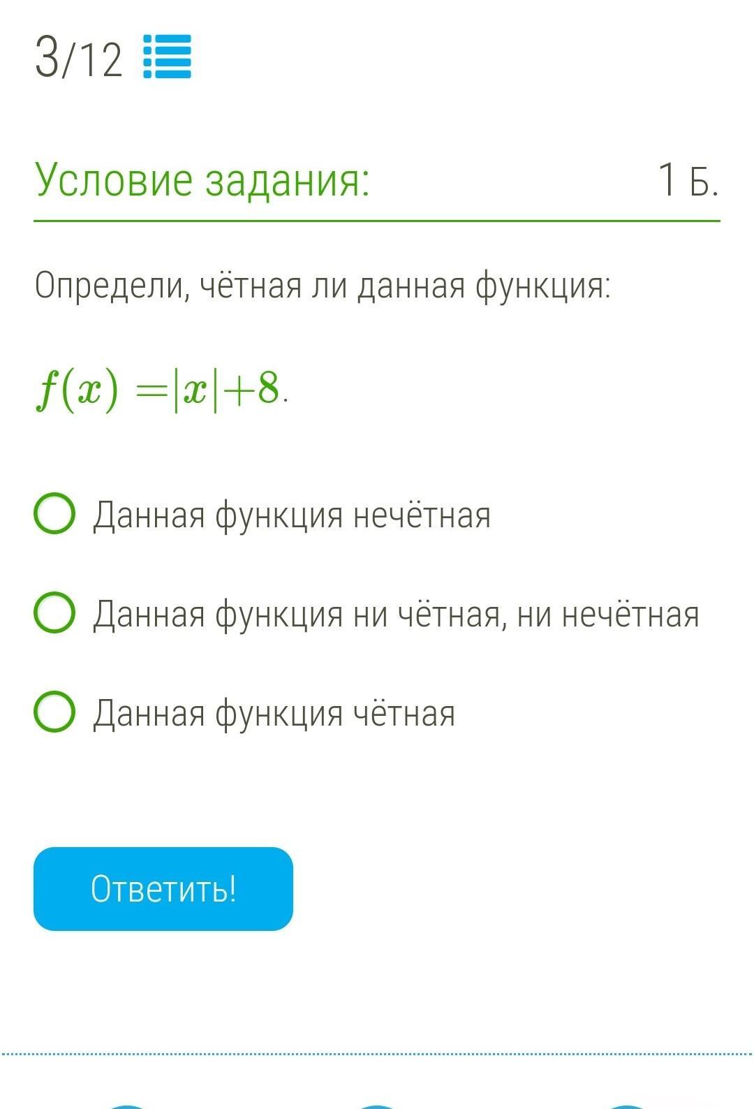 Условие выполняется, значит функция чётная.