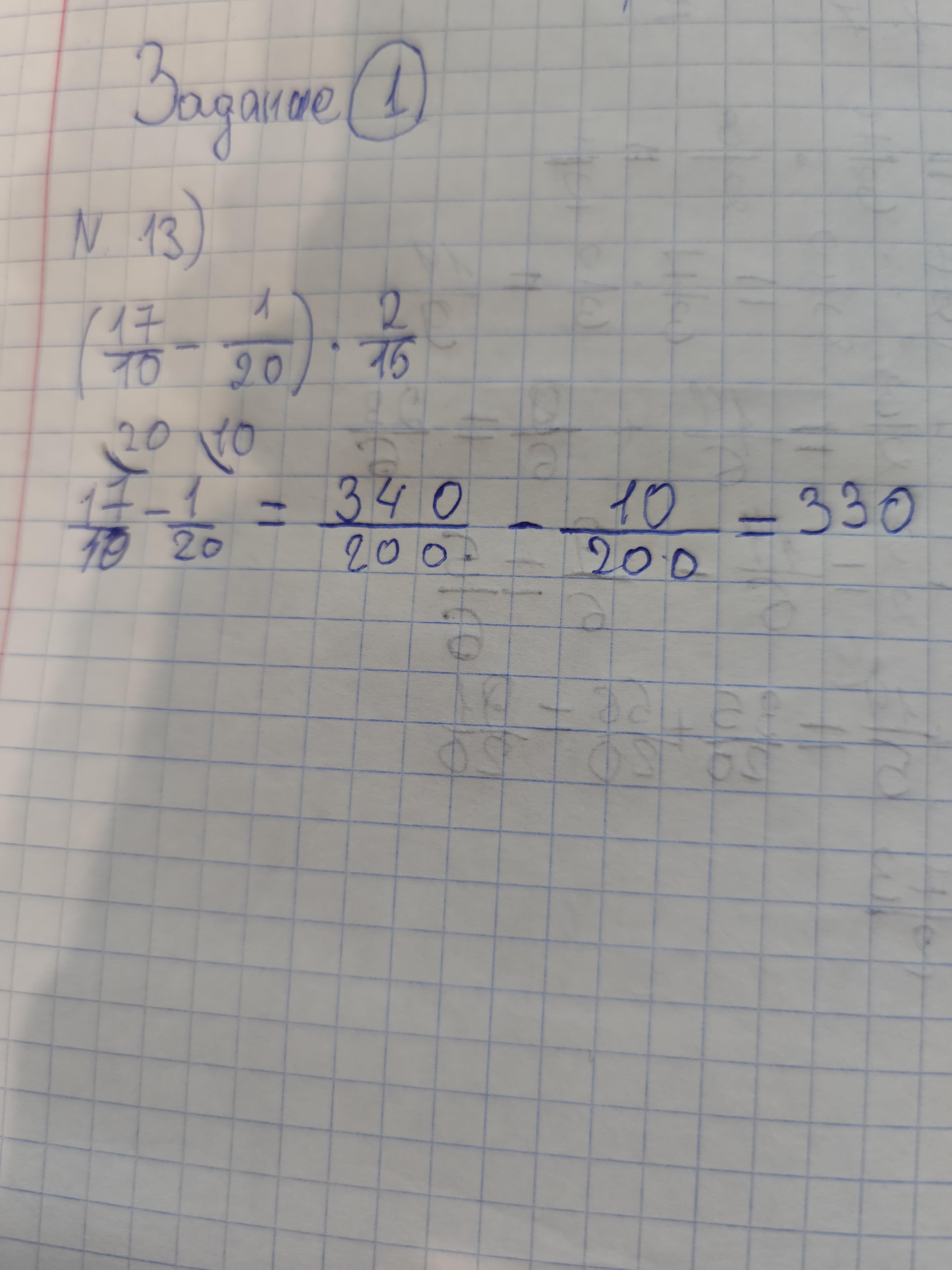 17/10 - 1/20 = не надо умножать на 10 и 20 надо находить НОК = 34/20 - 1/20 = (34 - 1)/20 = 33/20