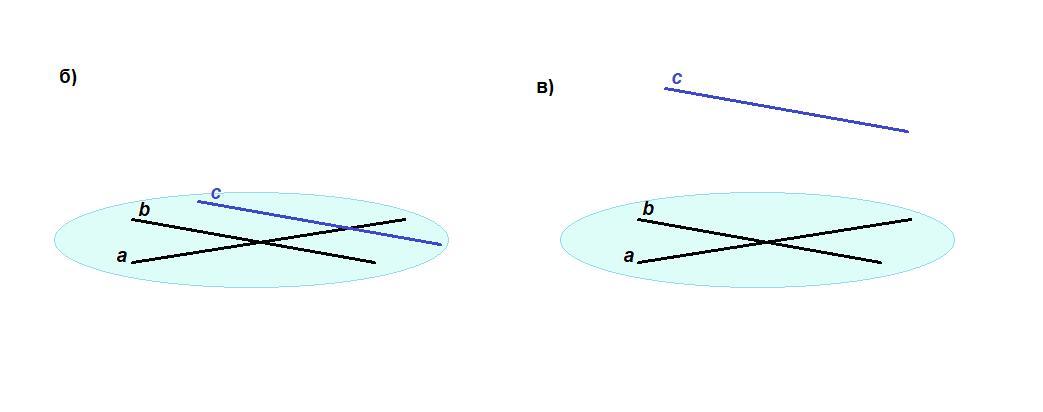 в) прямые а и с могут быть скрещивающимися, если прямая с не лежит в одной плоскости с прямыми а и b.