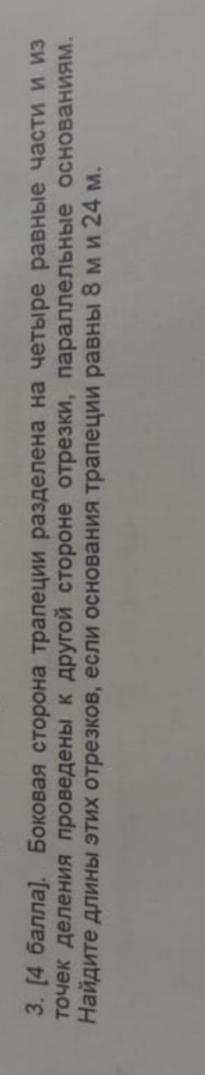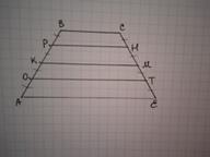 Дано: АВСЕ - трапеция; ВС=8 см, АЕ=24 см; АО=ОК=КР=РВ; ОТ║КМ║РН║ВС. Найти КМ, ОТ, РН.