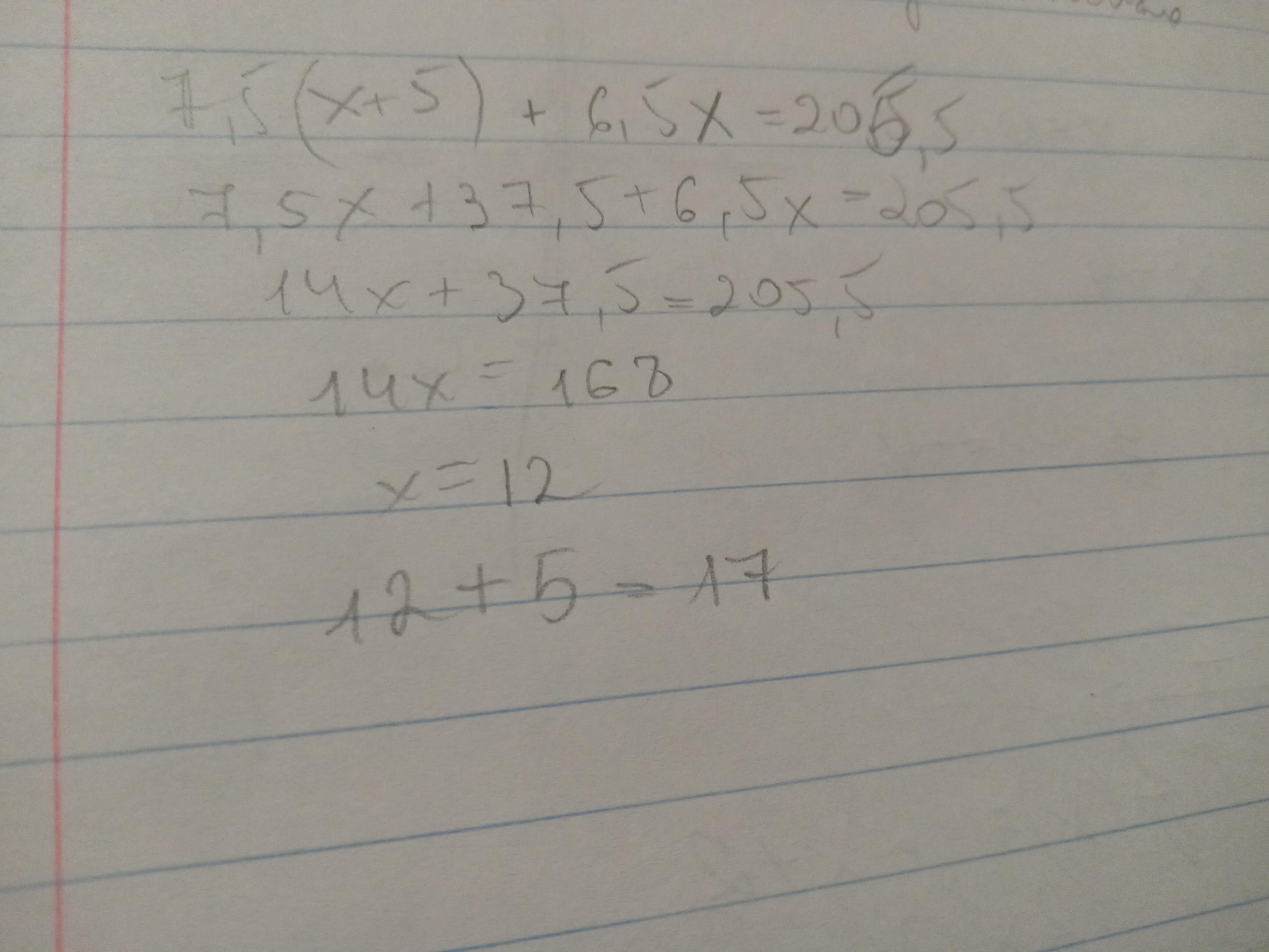 Зошит у клітинку коштує 7 грн 50 коп.,а в лінійку 6 грн 50 коп. Мама купила зошитів у клітинку на 5 більше ніж у лінійку,заплативши за всю покупку 205 грн 50 коп. Скільки зошитів у клітинку в лінійку купила мама?