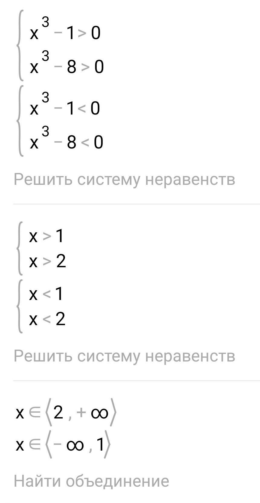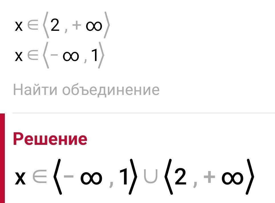 2) x принадлежит (-бесконечность;1) U (2,+бесконечность)