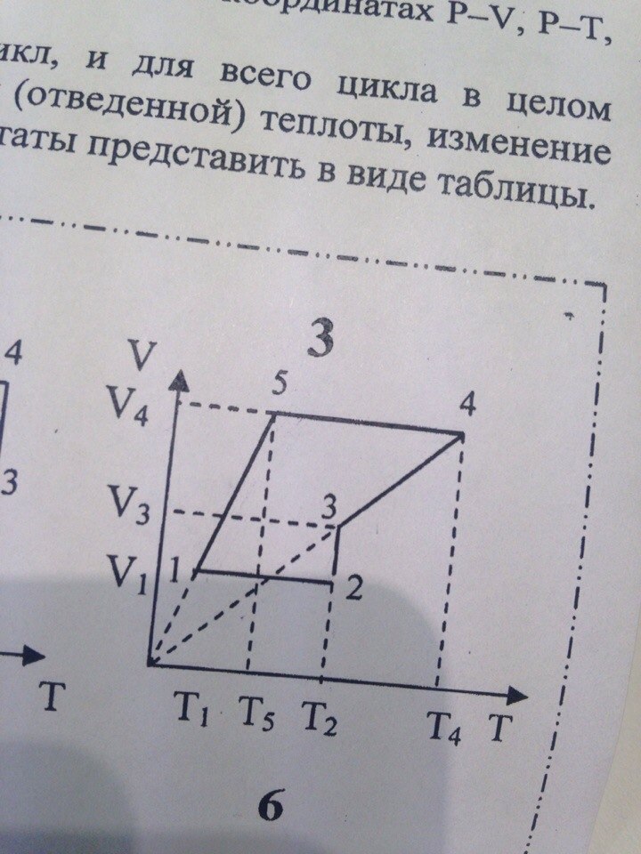 1-2 изохорический Tувелич; р увелич! 2-3 изотермич V увелич р уменьш; 3-4 изобарный Т увелич V уменьш; 4-5 изохорический Т уменьш р уменьш; 5-1 изобарный Т уменьш V увелич
