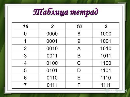 Также как и в таблице триад каждое число имеет свой двоичный код.