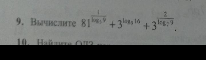 {81}^{ \frac{1}{ log_{5}(9) } }  +  {3}^{ log_{3}(16) } +  {3}^{ \frac{2}{ log_{7}(9) } } =  ({9}^{2}  ) ^{ log_{9}(5) }  + 16 +  {3}^{2 log_{9}(7) }  =  {9}^{2 log_{9}(5) }  + 16 +  {3}^{2 log_{ {3}^{2} }(7) }  =  {9}^{ log_{9}( {5}^{2} ) }  + 16 +  {3}^{2 \times  \frac{1}{2}  log_{3}(7) }  =  {5}^{2}  + 16 +  {3}^{ log_{3}(7) }  = 25 + 16 + 7 = 48