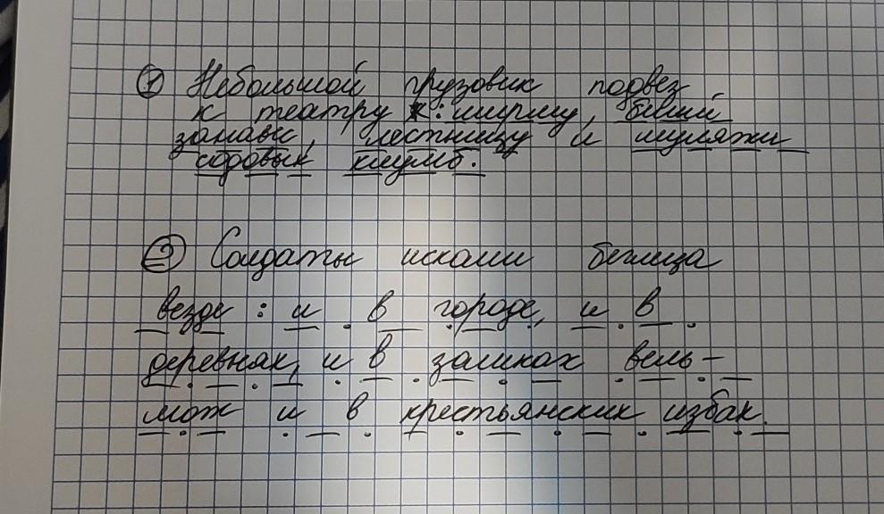 1 заданиеПоставте знаки препинания с однородными членами и подчеркнити их Небольшой грузовик подвез к театру ширму белый занавес лестницу и муляжи содовых клумб 2 задание Поставте знаки препинания в предложениях с обобщаяюющим словом при однородных членах.Подчеркните обобщающее слово и однородые члены как члены предложения Солдаты искали беглеца везде и в грроде и в деревнях и в замках вельмож и в крестианских избах