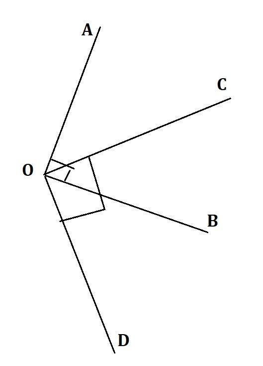 В итоге ∠AOC=∠COB=∠BOD=45°.