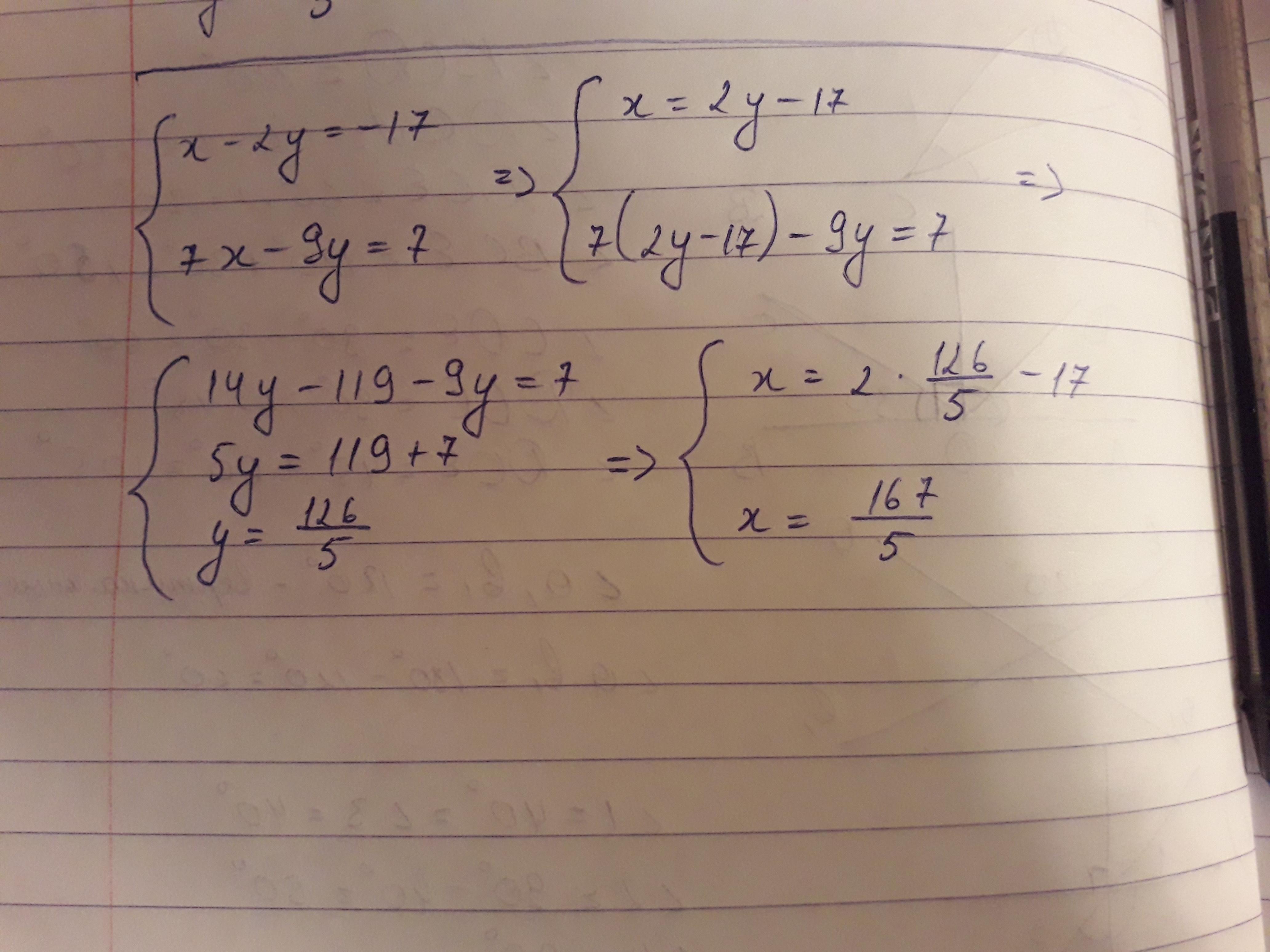 Пошаговое объяснение: x=2y-17,