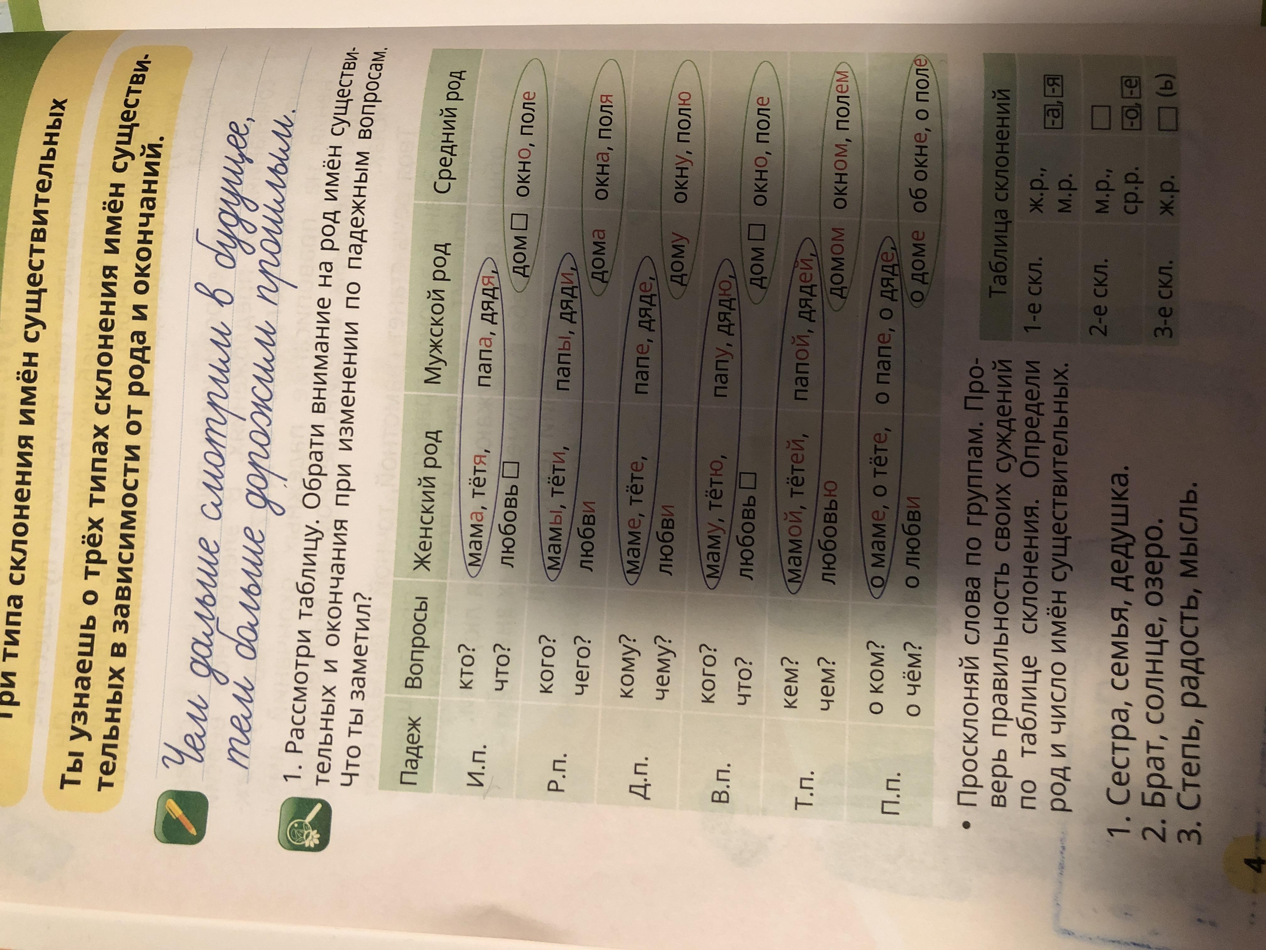 Там окончания в одном столбике заканчиваются на А-Я, если приглядеться А и Я одинаковы по смыслу. В 3 столбике ср.род,а окончания у среднего рода всегда О и Е, в ед.числе