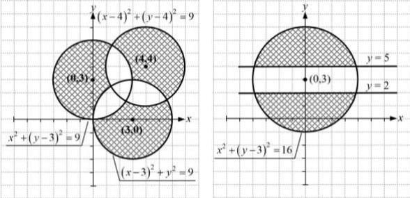 if (x * x + (y - 3) * (y - 3) <= 16) and (y <= 2 or y >= 5):