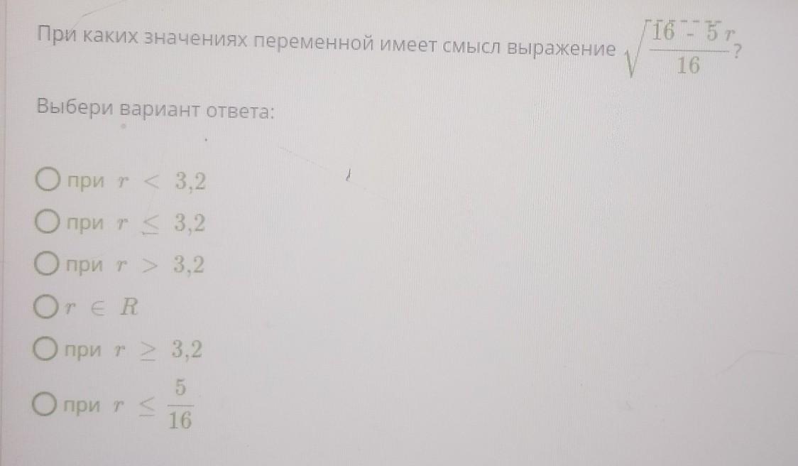 А вот чтобы дробь была неотрицательной, нужно чтобы 16-5r0.