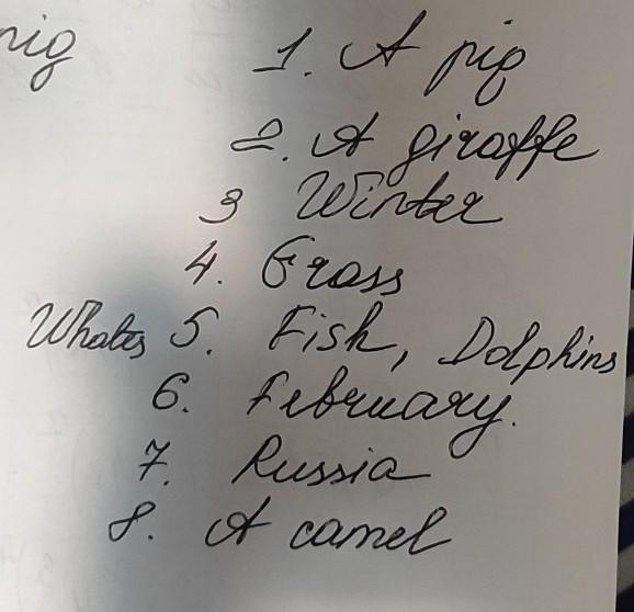 Winter. Grass. A giraffe. Russia. Fish. Dolphins.
