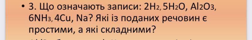 прості-це ті які складаються атомів одного виду,тобто:прості-це 2H2,4Cu,Na