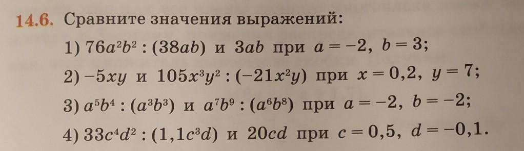 1) 76a^2b^2 : (38ab) и Заb при а = -2, b = 3;