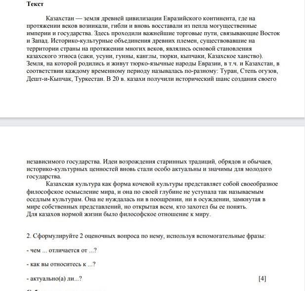 1. чем, по вашему мнению, культура казахов отличаются от культур других народов?