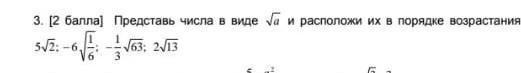 СРОЧНО ОООО, ПОЖАЛУЙСТА ЛЮДИ ДОБРЫЕ ПОМОГИТЕЕЕЕЕ. представь числа в виде корень а и расположи их в порядке возрастания