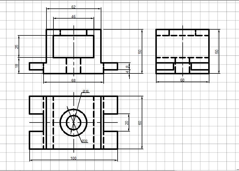 Только проблема с размерами - они все даны на предыдущих проекциях, а по правилам черчения размеры не должны повторяться.