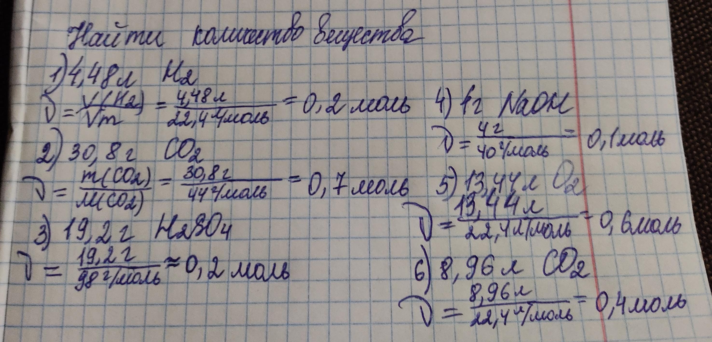 Дайте ответ в молях