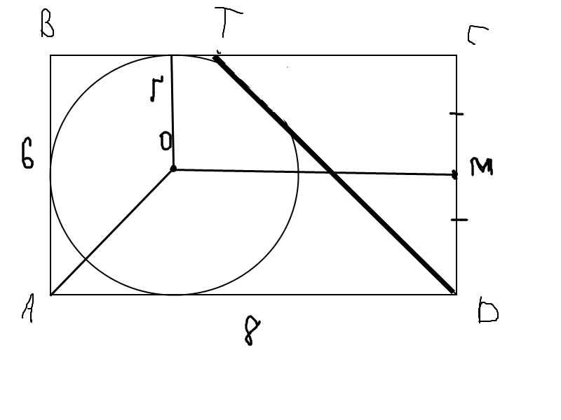 Помогите. Очень срочно) В прямоугольнике ABCD AB=6, BC=8. Точка Т принадлежит отрезку BC. В четырехугольник ABTD вписана окружность. Вычислите площадь четырехугольника, вершинами которого являются точка A, D, центр окружности и середина стороны CD Заранее спасибо;)